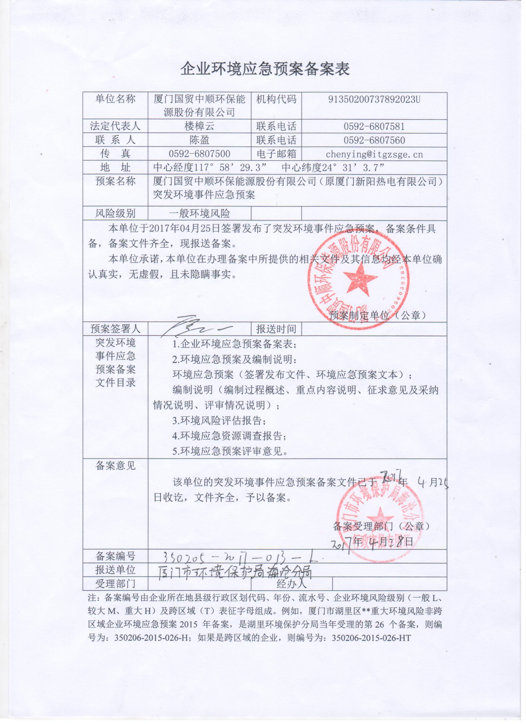 廈門海發(fā)環(huán)保能源股份有限公司環(huán)境信息公開